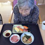今日の昼食は、お寿司でした。その方の状況に応じてネギトロで提供したり…